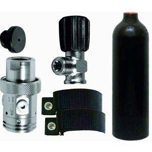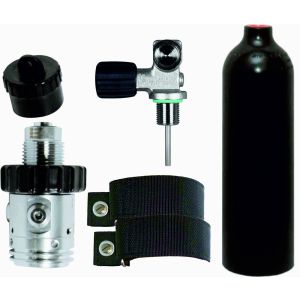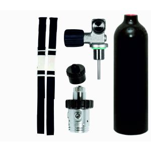 7. BTS 1.5 Litre 230 Bar Black Luxfer Aluminium Cylinder with DIN Valve, 1st Stage, OPV & Cylinder Mounting Straps S20999901