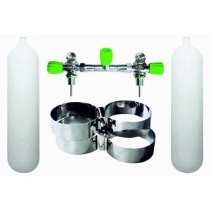 8. BTS Standard 12 Litre 300 Bar DIN Steel Cylinder Twin Set with Isolation Manifold & Bands S16116664
