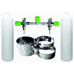 4. BTS White Flat Bottom 12 Litre 232 Bar M26 Steel Cylinder Twin Set with Isolation Manifold & Bands S16816696