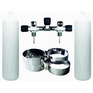 7. BTS White Flat Bottom 12 Litre 232 Bar DIN Steel Cylinder Twin Set with Isolation Manifold & Bands S16816692