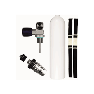 1. BTS 3 Litre 232 Bar White Luxfer Aluminium Cylinder with DIN Valve, 1st Stage, OPV & Cylinder Mounting Straps S20999902